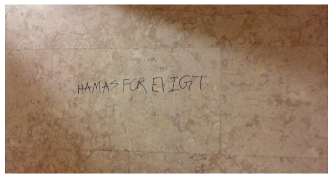 Figura 3 Inscrição em dinamarquês detetada numa estação de metro de Lisboa em 2015, cuja tradução se lê: “Hamas para sempre”.