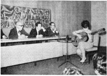 Em 1960, o Diário de Notícias, um periódico carioca, de 29 de setembro de 1960, destaca a louvável iniciativa que levou à realização do “Festival de 1960”. Na programação variada, onde se incluiu diversos outros artistas de destaque no cenário paulistano e nacional, encontra-se a intervenção de Maria Lívia São Marcos ao lado de outro importante representante da guitarra brasileira, Antônio Carlos Barbosa-Lima (Figura 8), onde dividiram o concerto. Concerto este identificado com o primeiro de Maria Lívia em terras cariocas: “[...] O programa do ‘Festival de 1960’ já está elaborado e é o que se segue: [...] dia 17 - Audição dos jovens violonistas Antônio Carlos Barbosa Lima e Maria Lívia São Marcos; [...]” (“Festival de Música 1960”, 1960, p. 3).