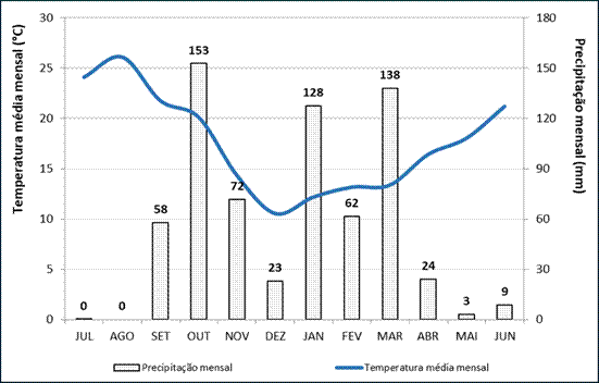 A evolução da disponibilidade e qualidade das pastagens ao longo do ciclo vegetativo é determinada pelas condições meteorológicas (especialmente temperatura e precipitação) e condicionada pelo maneio do pastoreio (contínuo, diferido, encabeçamento, entre outros aspetos). A Figura 2 mostra uma distribuição relativamente equilibrada da precipitação no outono e inverno, o que proporcionou condições para uma elevada produtividade das pastagens.