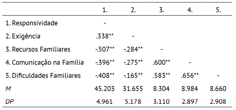 O presente estudo reconhece a responsividade e a exigência como estando associadas negativamente com os recursos familiares, o que significa que, com a presença de responsividade e exigência, as dificuldades familiares vão sendo menores. Os recursos familiares dizem respeito à capacidade de adaptação na família, que, por sua vez, se prende com a habilidade da família alterar a sua estrutura, os papéis e as regras, com o objetivo de dar resposta às necessidades desenvolvimentais (Gonçalves & Pereira, 2011).