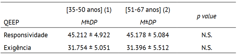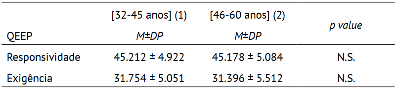Nota: QEEP = Questionário de Estilos Educativos Parentais; M = Média; DP = Desvio-Padrão; N.S. = Não Significativo.