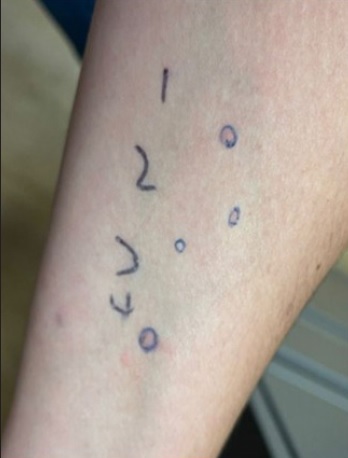 Foram realizados testes cutâneos por picada (SPT) com extrato comercial de milho (Diater®), bem como testes tipo picada-picada com milho cozido, ambos positivos.