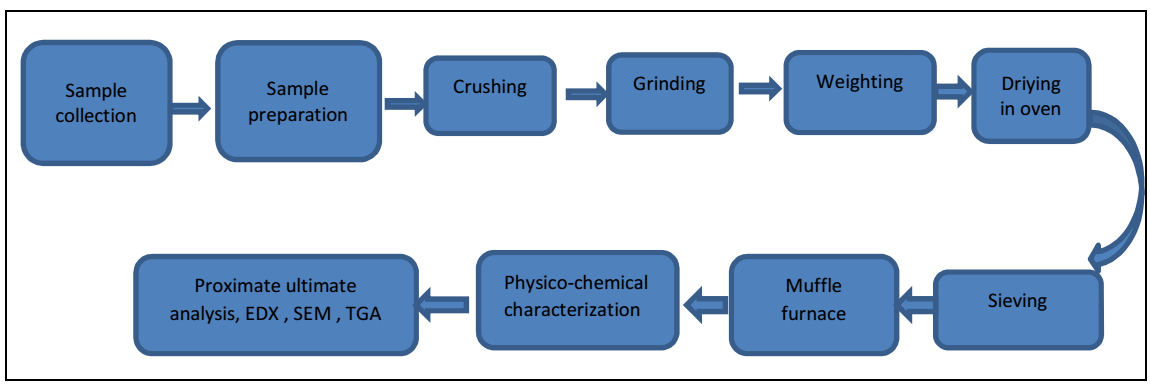 Four Bm sources are presented in this research paper. BTB and NTB were collected from different areas of Jamshoro. AS and WS were purchased from Quetta Kandahar bazaar shops, Baluchistan, Pakistan. Fig. 1 shows their experimental research methodology.