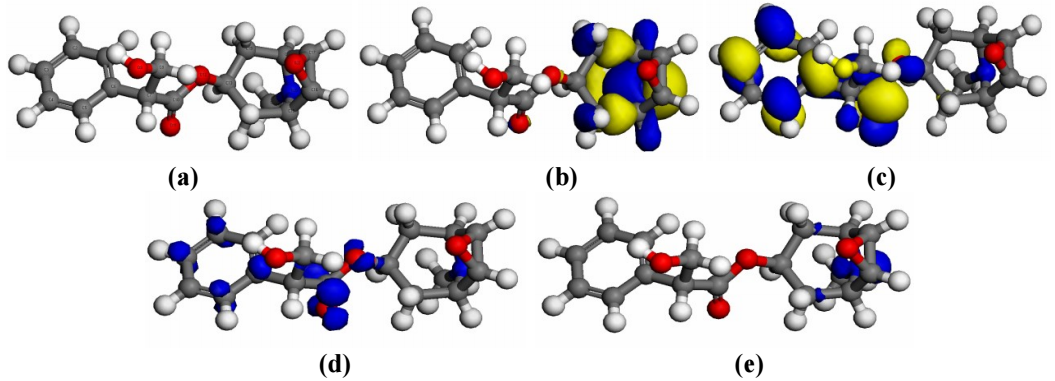 It can be seen from Figs. 2a-c that HOMO of SAA is situated at the tropane skeletone, while its LUMO is seen in the benzene ring. HOMO placement in SAA indicates that O and N were the preferential sites for the corrosive attack 13-15.