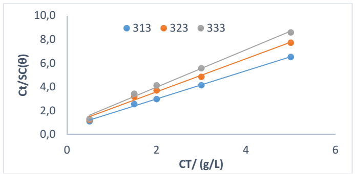 | Ct M (g/L) | 313 K | 323 K | 333 K | 313 K | 323 K | 333 K | 313 K | 323 K | 333 K |