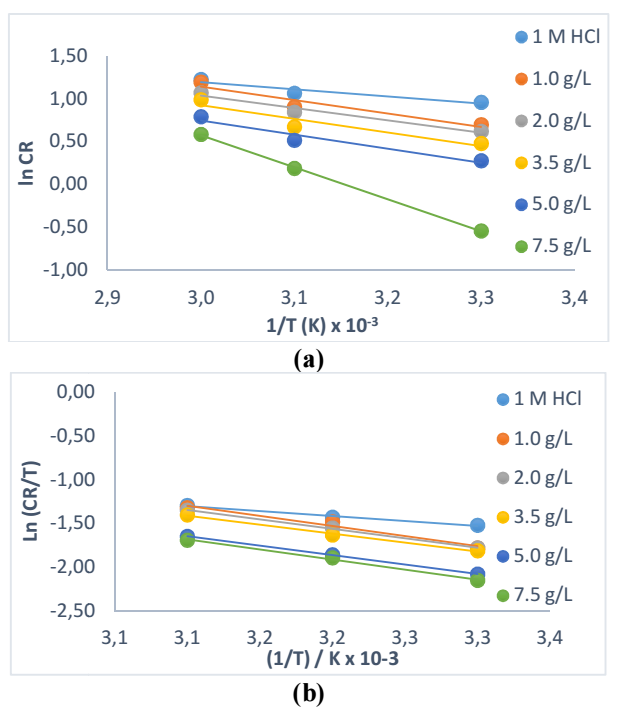 | Ct of HCl in M (g/L) | Ea | ∆Hads (kJ/mol) | ∆Sads (kJ/mol) |