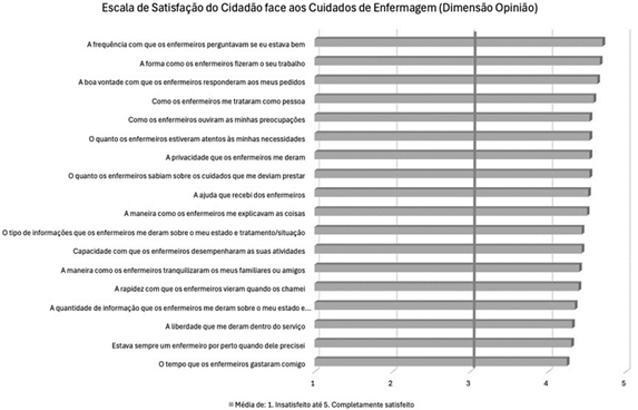 Figure 2 Average response of the 30 patients to the items on the Citizen Satisfaction with Nursing Care Scale, in the opinion dimension