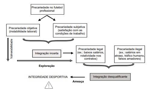 Tal como noutras atividades profissionais (ver Carmo e Cantante, 2014), a precariedade laboral no futebol é um problema social com forte impacto nas condições materiais e não materiais dos indivíduos. Não obstante, no panorama futebolístico os efeitos nocivos deste fenómeno extrapolam tais dimensões, manifestando-se, cumulativamente, na integridade desportiva e na própria segurança dos estados.
