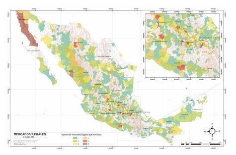 * Para la elaboración de este mapa se tomaron como mercados ilegales los siguientes: (a) sembradíos de marihuana y amapola; (b) narcolaboratorios; (c) tala clandestina; (d) robo de gasolina; (e) robo de gas LP; y (f) trata de personas.