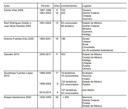 Cuadro 1 Relación de literatura sobre linchamientos en México