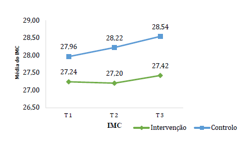 A Figura 4 representa a evolução do IMC ao longo da intervenção.