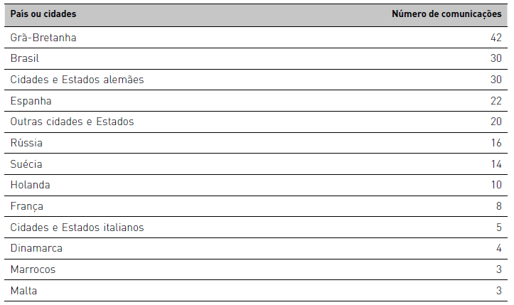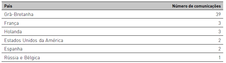 Desconstruindo este tipo de comunicações por país ou cidades, obtiveram-se os dados expressos na tabela 5.