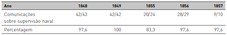 Tabela 7 > Peso da supervisão naval nas comunicações anuais do MNE com o Ministério do Reino