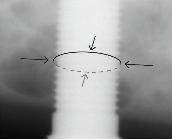 The samples were radiographed with an intraoral direct digital sensor (RVG 5100, Kodak, USA) and a 70-KV, 8-mA X-ray tube (Irix 70, Trophy, France), with a 0.30-s exposure time, and the central beam directed perpendicularly to the implant axis with a focus-to-object distance of 30 cm (long-cone parallelling technique).