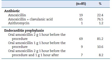 The antibiotic prescription pattern was also evaluated in the most contentious clinical situations: endocarditis prophylaxis, before third-molar extraction, pulpitis diagnosis, nuclear diagnosis, and patient persuasion.