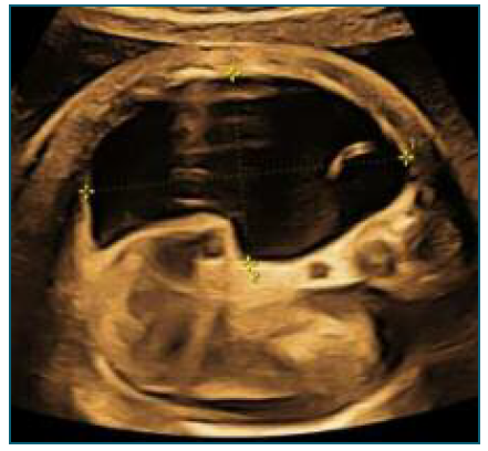 Fetal pleural effusion (FPE) refers to the accumulation of fluid in the pleural space and is classified as a benign finding in approximately 50% of cases. The reported prevalence ranges from <1 to 2.2% among neonates admitted to a neonatal intensive care unit1. Neonatal death associated with FPE usually results from non-immune fetal hydrops, preterm birth, and pulmonary hypoplasia. It is known that fetal pleural effusions are associated with significant neonatal morbidity and mortality, and when diagnosed, referral to a specialized perinatal center for detailed ultrasound evaluation to search for structural abnormalities or findings suggestive of congenital infections or fetal anemia is essential2.