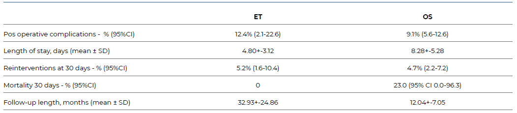 SD - Standard Deviation; CI - Confidence Interval; ET - Endovascular Treatment; OS - Open Surgery