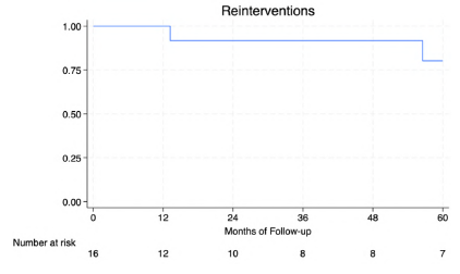 Figure 2 Kaplan-Meier analysis of re-intervention of patients with type IV thoracoabdominal aneurysm treated with elective open surgery, included in the study.