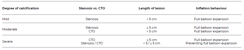 To classify calcification severity, the authors use the classification system proposed by our group and previously published.3 This classification system integrates femoro-popliteal degree of calcification and also technical factors that may influence target-lesion treatment patency.