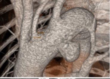 Figure 1 Pre-operative computed tomography angiography 3D reconstruction showing the saccular aneurysm of the aortic arch.