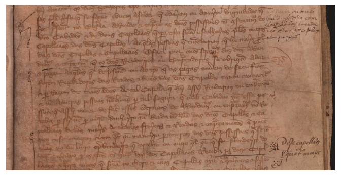 Pagos esses encargos, se houvesse algum resíduo das rendas, seria arrecadado pelo cabido, cumprindo-lhe fazer as melhorias necessárias nos bens que se encontravam ligados às capelas. Também reverteria para o cabido um terço do montante correspondente às ausências dos capelães, mas já os réditos das distribuições quotidianas se destinavam às capelanias que estivessem vagas. Mais se acrescentava que se houvesse alguma demanda sobre bens, possessões ou rendas das capelas, o cabido, dado os proventos que auferia, devia arcar com as custas, salvo se o montante dos resíduos não chegasse para tal, tendo então de se recorrer à arca das capelas. Igualmente ficava esclarecido que os olivais de onde procederia o azeite que se destinava a sustentar lâmpadas não estavam incluídos neste conjunto de bens, sendo o recebedor das capelas responsável por arrecadar os frutos neles colhidos e os destinar a tal fim69.