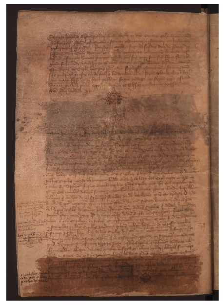 Figura 5 Revogação de uma cláusula do regimento dos capelães, a 14 de Maio de 1378 (ANTT, Cabido da Sé, 2ª incorp., mç. 52, doc. 2051, fl. 13v).