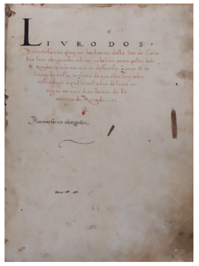 Coimbra, Arquivo da Universidade de Coimbra, Cabido e Mitra da Sé de Coimbra, Livro dos aniversários dos capelães da Sé, depósito III-D, secção 1ª, estante 5, tabela 3, n. 84.