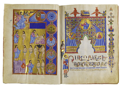 This Gospel is the exact copy of an earlier Armenian Gospel known as the “Gospel of eight artists” (Matenadaran MS 7651, 13-14th centuries), produced in the Armenian Kingdom of Cilicia (1198-1375) (Fig. 3). The painter of this manuscript was working in the scriptorium of an Armenian monastery in Crimea. It is not known how he had access to the medieval model (MS 7651) that is now kept in Yerevan’s Matenadaran.