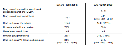 The Portuguese paradox - having decriminalised drug use while simultaneously witnessing a significant increase in punitive measures targeting PWUD - highlights the State’s reluctance to fully recognise users as individuals in need of care, as repeatedly stated in drug laws, or, less paternalistically, as individuals deserving agency and self-determination. Furthermore, it well illustrates the distrust with which PWUD are viewed and the expectation that drug use will be accompanied by other illegal activities, particularly dealing. As a result, proven drug users are frequently subject to criminal sanctions foreseen in the Decree-Law No. 15/93 (1993).