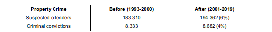Table 3 Property crime suspected offenders and convictions (yearly averages)