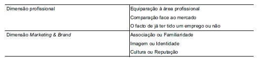 Figura 2 Parâmetros de avaliação à vertente profissional e brand