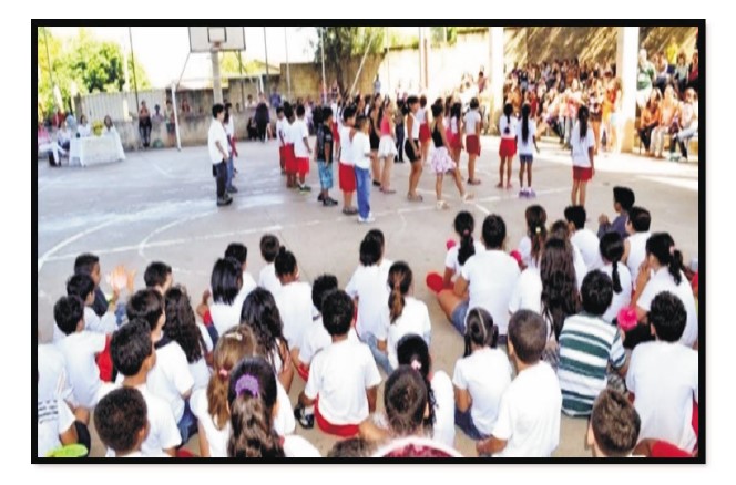Figura 2 Ambiente escolar: alunos, famílias e professores reunidos na quadra de esportes da Escola Maria