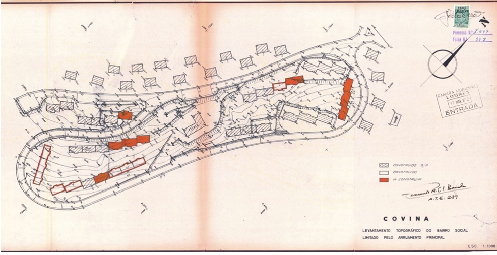 The Pirescoxe settlement, which had been completely cut off from the Covina Housing Estate, had a limited ability to respond to the large migratory flows to industrial centres and consequently to house workers and their families. This caused a severe housing shortage in the nearby villages and hamelts, like Pirescoxe, Santa Iria de Azóia and Via Rara, which prompted two projects for establishing in this area two sets of Economic Housing, following similar suburban operations in Queluz and Oeiras (Costa, 1959). Indeed, these two developments seem to have been confirmed, the one in Queluz finished in the late 1950s, and the one in Oeiras slightly later. While in the former, only single-family semidetached houses were built, in the latter, there was already a mixed-development approach, with an area for cottages and another one for four-floor tenements.