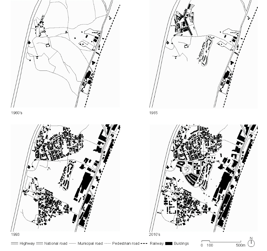 The rural habitat indeed points out the important task of accounting for the morphology of those elements which are not necessarily built (land-uses, cultivation types, agricultural equipment, etc.) but which are fundamental to the functions and forms of rural settings. However, despite the enthusiasm of 1960s architects to register in full detail the conditions of rural habitats, in all its domains, upon publication, most attention was turned towards architectural forms, i.e. the built aspect (Marat-Mendes & Cabrita, 2015; Marat-Mendes et al., 2021). Consequently, other specific domains of the rural habitat were neglected, contributing to an erasure of the memory or understanding of specific uses and functions, and inherent forms, such as those of agriculture. More recently, research on urban sustainability suggests that, in the future, agricultural uses should become more frequent in cities themselves (Reynolds, 2009; Marat-Mendes et al., 2021) which demands greater acknowledgement of this type of land-use. Here, we seek to retrieve this aspect in urban analysis by focusing not on form alone, but also on what Spiro Kostof (1991) called ‘urban process’, i.e., the set of institutions, social forces and movements that determine the emergence, transformation or elimination of urban form.