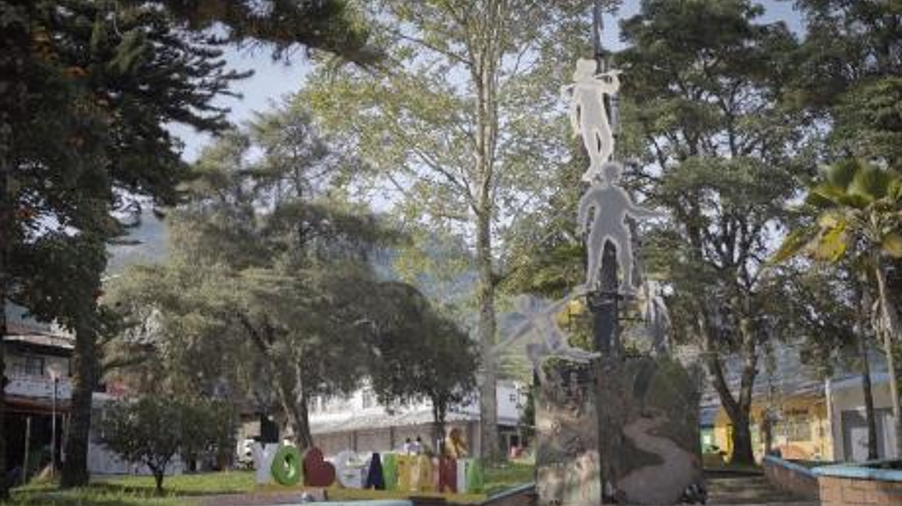 En cuanto a los elementos identificadores y simbólicos, el parque principal sigue siendo el escenario donde han ocurrido algunos de los hechos más representativos del corregimiento, allí se ubican símbolos que narran dos momentos históricos y sociales muy diferentes (Primera voz, 2022). Hasta hace algunos años el monumento más representativo del parque, simbolizaba la muerte de un militar en el lugar, hoy día el monumento ‘Legado a la convivencia y a la no repetición del conflicto armado’ (Figura 11) sobresale y cuenta una historia de reconciliación, dialogo social, reconocimiento a los procesos comunitarios y las víctimas (COMISIÓN DE LA VERDAD, 2021).