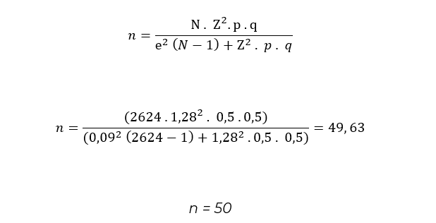 Según fuentes no oficiales, se contempla que el centro poblado alberga en su área urbana alrededor de 4.000 habitantes (Caracol Radio, 2021), pero al no poder respaldar este dato, se decide tomar la población de 2.624 habitantes que tenía el corregimiento para el año 2004, según la información consignada en el componente general del acuerdo 010 del mismo año (Alcaldía de Planadas, 2004). Se tomo una muestra no probabilística, obedeciendo a los criterios de la investigación, donde los encuestados fueron elegidos al azar entre la población objeto (López, 2004), teniendo en cuenta los 2624 habitantes mencionados con anterioridad, un margen de error del 0.09 % y un nivel de confianza de muestreo del 80%, aplicando la fórmula empleada para el cálculo de poblaciones finitas (Bolaños, 2012), se obtiene que el tamaño de la muestra debe ser de 50 encuestados.