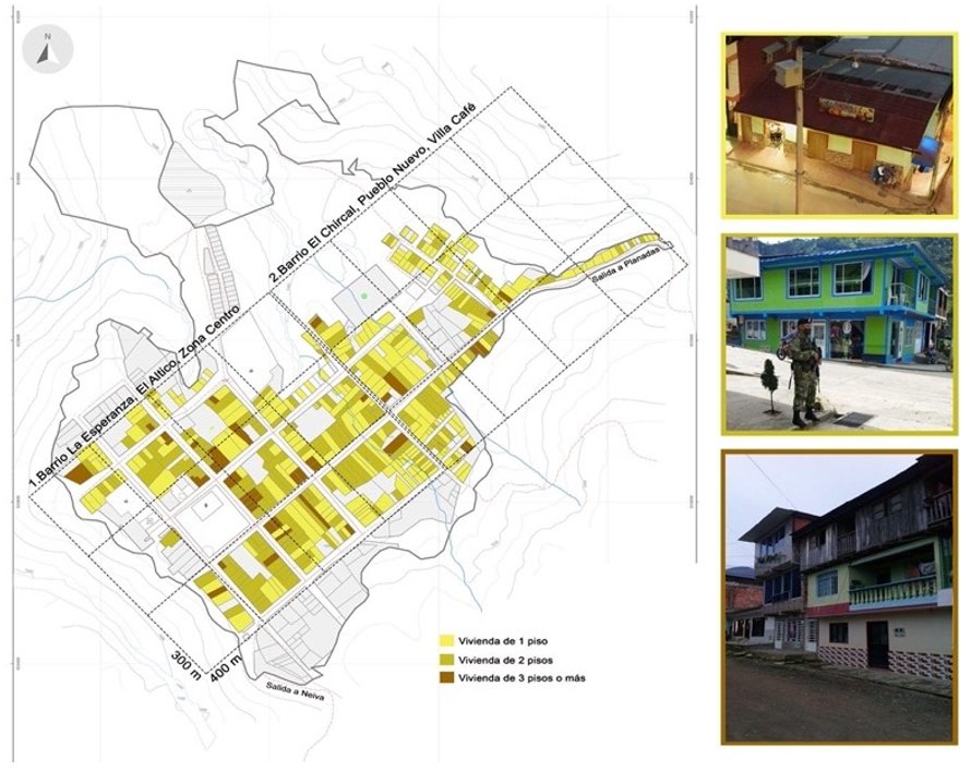 De acuerdo a los resultados del trabajo de campo, se observó que la zona 1, compuesta por los barrios La Esperanza, El Altico y Centro (Figura 7), cuenta con un total de 252 propiedades, de las cuales el 56% están destinadas a uso residencial y el 44% a uso mixto. Es importante destacar que la vivienda de 1 piso prevalece en esta zona, con 47%, seguida por la vivienda de 2 pisos con el 41% y, finalmente, la vivienda de 3 pisos o más con el 12%.