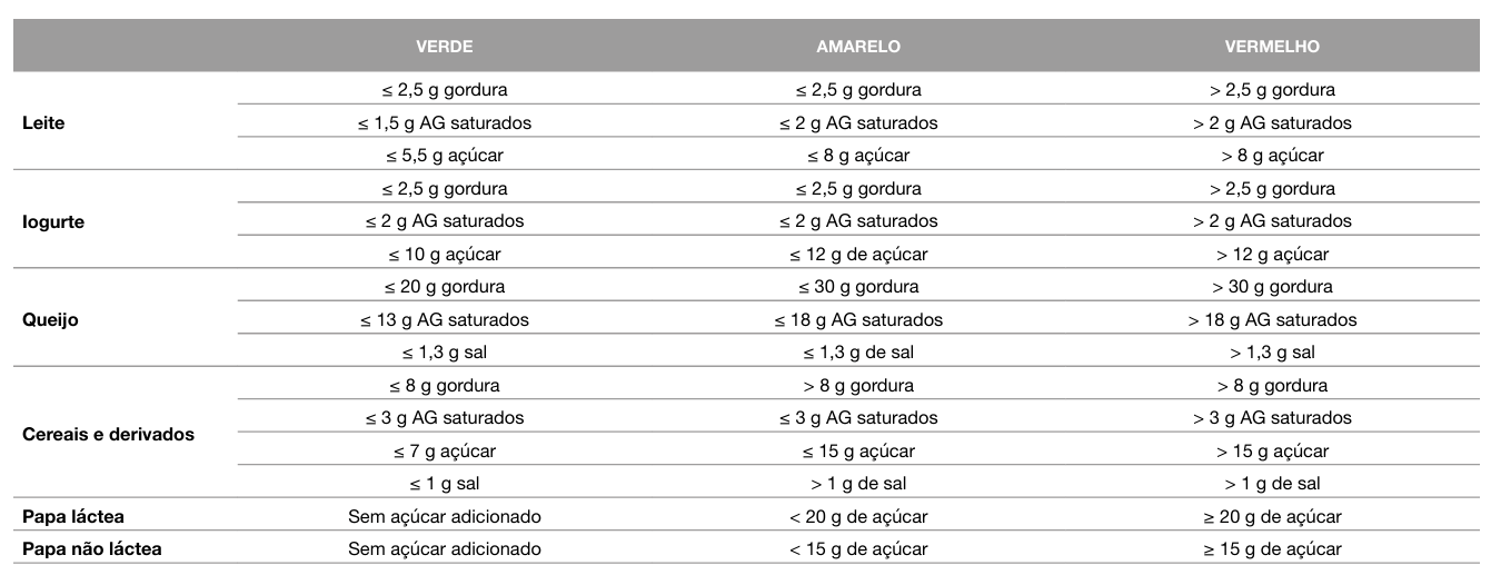 A Tabela 1 apresenta os critérios considerados para a classificação dos alimentos nesta metodologia.