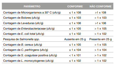 Parâmetros B: B. cereus, C. perfringens, Leveduras, Bolores