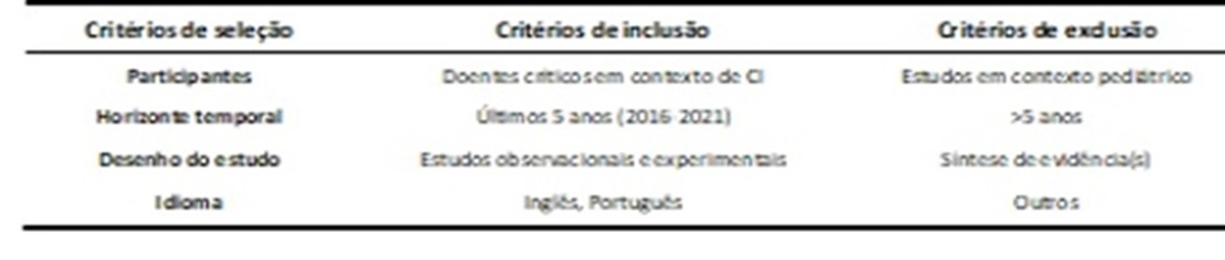 Para seleção dos artigos a utilizar neste estudo, foram definidos critérios de elegibilidade, isto é, os critérios de inclusão e exclusão de documentos a incluir na análise. Os critérios definidos encontram-se na seguinte tabela.