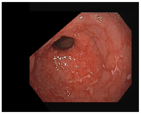 Few studies have been conducted on the gastric involvement of ARB. The most common endoscopic findings in the stomach are nonspecific and include er-ythema, mucosal nodularity, friability, and erosions/ulcers, both in the antrum and on the body [3]. Histological findings are often heterogeneous and nonspecific, including lymphoplasmacytic infiltrate with eosinophils, as seen in this case, and other features such as glandular atrophy, occasional intestinal metaplasia, intraepithelial lymphocytes, subepithelial collagen deposition, and epithelial surface lesions [1, 3]. These findings may involve the entire mucosa or the intermediate region (unlike Hp gastritis, where inflammation predominantly affects the surface of the mucosa). The presence of dysplasia has not been reported in other cases of ARB-induced gastropathy in the literature.