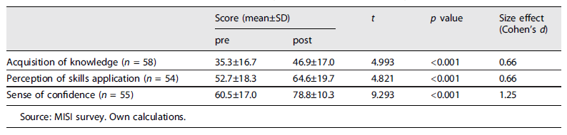 Table 2 Mean scores before and after the training session, by dimension of the MISI survey (T test and Cohen’s effect size)
