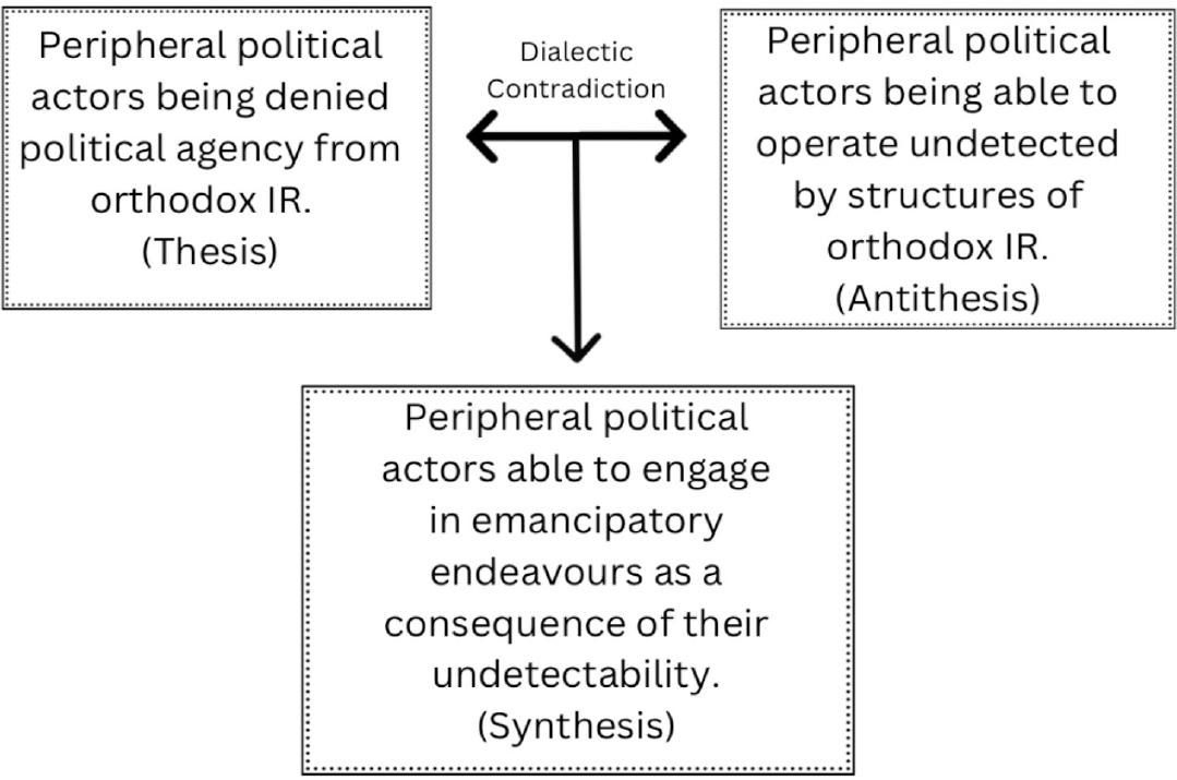 Therefore, recognizing and exploiting these theoretical blindspots can be a strategic tool for peripheral actors. By operating beneath the radar of orthodox IR paradigms, they can develop grassroots movements and challenge the status quo, ultimately pushing for greater inclusion and recognition within the international system (Fig. 2).