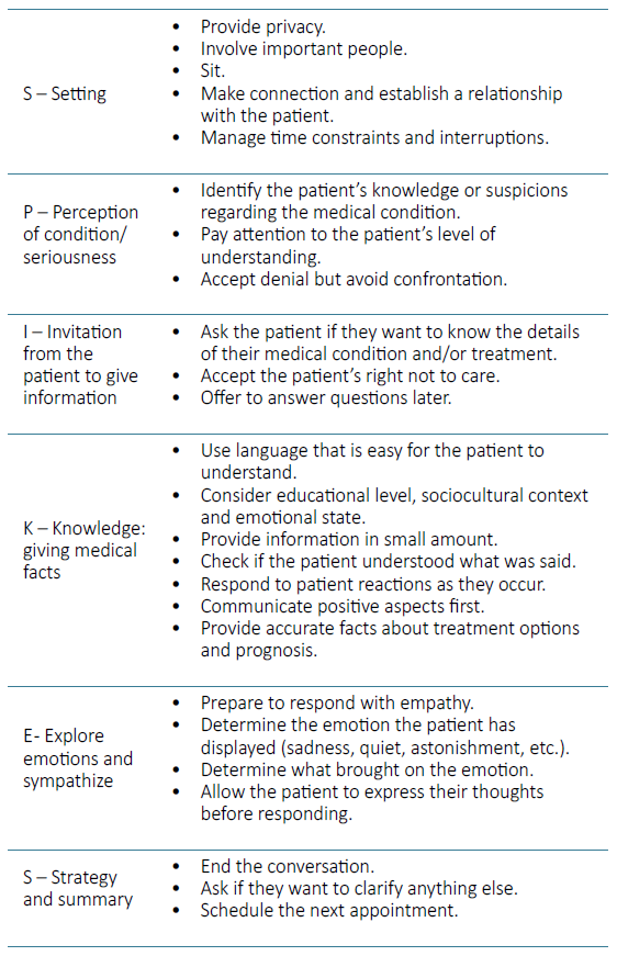 The six steps of SPIKES protocol are described in Table 2.18‑21