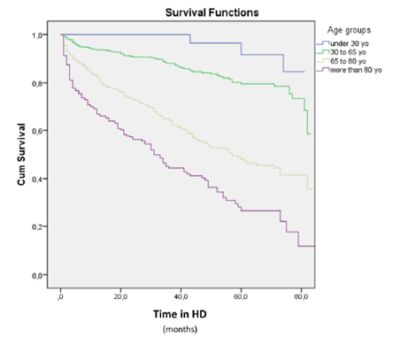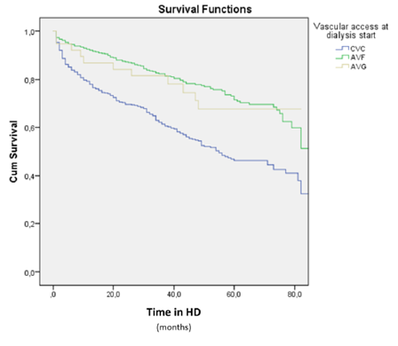 Kaplan‑Meier survival analysis were used to compute the survival over time and its differences according to age and vascular access at HD start during the given follow‑up. Statistical significance was defined as a p‑value lower than 0.05. Statistical analysis was performed using the statis‑ tical software package SPSS for Windows (version 21.0).