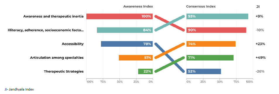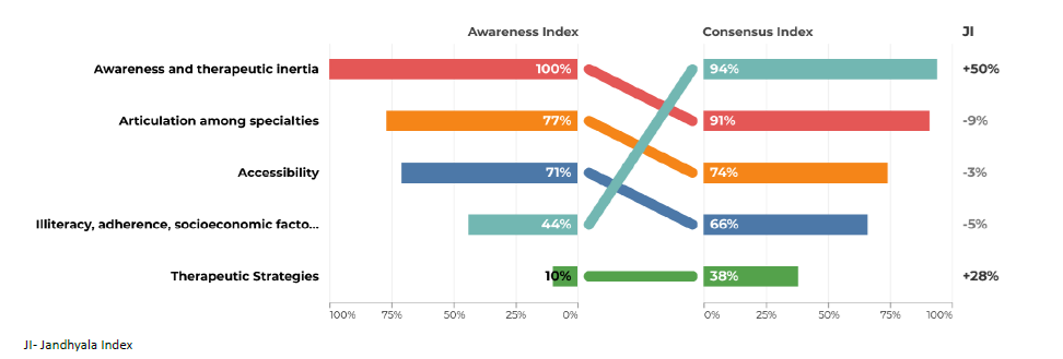 The responses to the Awareness Round questionnaire were used to assess knowledge awareness by calculating the frequency of each coded item in relation to the overall most frequently occurring coded item ‑ the Awareness Index (AI). The compiled list of items were reviewed and refined by the investigators and included in Consensus Round as structured questionnaires.