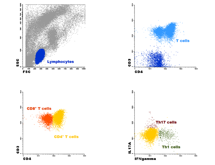 For PD patients, blood and PE samples were simultaneously collected, avoiding a time lag between samplings. Peripheral blood collection was done for a heparin tube for the flow cytometry analysis, and in a serum‑gel tube for the ELISA assay. The latter was centrifugated at 3000 rpm for 10 min and the serum was frozen at‑20ºC. PE samples were collected in sterilized containers and all samples were analyzed within 24 hours. To maximize immune cell identification, centrifugation at 2000 rpm for 5 minutes before the following protocol was performed. The collection of PE did not apply to control patients. Absolute peripheral blood and PE cell counts were calculated using a Yumizen H2500TM (Horiba, Kyoto, Japan) hematological cell analyzer. To measure IL‑17A levels, the samples were activated with a cocktail containing brefeldin A, phorbol 12‑myristate‑13‑acetate (PMA) and ionomycin. Peripheral blood and PE samples were diluted in RPMI‑1640 medium, in the presence of the referred cocktail and incubated at 37ºC in a sterile environment with a 5% CO2 humid atmosphere for 4 hours. After activation, samples were aliquoted in two tubes (one peripheral blood sample/tube and one PE sample/tube), one of them being the control (without antibodies). For staining intracellular cytokines, Cytofix/CytopermTM Fixation/Permeabilization Kit, a permeabilization and fixation protocol was followed. According to the manufacturer’s instructions, the samples were initially stained for the surface antigens with mouse anti‑human monoclonal antibodies (anti‑CD3 and anti‑CD4 for peripheral blood samples and anti‑CD3 and anti‑CD4 for PE samples), incubated for 15 minutes in the dark at room temperature (RT), washed with phosphate‑buffered saline (PBS) and centrifuged at 2000 rpm for 5 minutes. The cell pellet was then resuspended in fixation/ permeabilization solution, incubated for 20 minutes in the dark at RT and centrifuged at 2000 rpm for 5 minutes. A washing step was performed next with BD Perm/WashTM buffer (diluted 1:10 in distilled H2O), followed by a 10‑minute incubation period in the dark at RT and centrifuged at 2000 rpm for 5 minutes. For the intracellular staining, anti‑IFN‑γ, anti‑IL‑17A (peripheral blood samples), anti‑IFN‑γ and anti‑IL‑17A (PE samples) were added and incubated for 30 min in the dark at RT. Another washing step was performed, after which the cell pellet was resuspended in PBS and samples were immediately acquired in a FACSCaliburTM (BD Biosciences, San Jose, CA, USA) flow cytometer. For each sample and whenever possible, 1x104 events were acquired and analyzed using InfinicytTM software (version 1.8, Cytognos SL, Salamanca, Spain). To quantify the T cell subsets, total lymphocytes population was identified based on forward (FSC) and side (SSC) scatter properties. Within this cell population, T cells were identified based on the expression of CD3 and subsequently the CD4+ T cells, according to the ex‑ pression of CD4+. CD8+ T cells were identified by exclusion, as CD4‑ CD3+ T cells. Considering the expression of IL‑17A and IFN‑γ, Th17 and Th1 cells were identified, respectively, as CD4+ IL‑17A+ IFN‑γ‑ and CD4+ IL‑17A‑ IFN‑γ+.24 Fig. 1 demonstrates the flow cytometry gating strategy. (Additional data about the reagents and antibodies in Supplementary Material). To measure the expression levels of IL‑17A in the serum and effluent samples, LEGEND MAXTM Human IL‑17A ELISA Kit, an enzyme‑linked immunosorbent assay (ELISA) was used following manufacturer’s instructions (Supplementary Material).