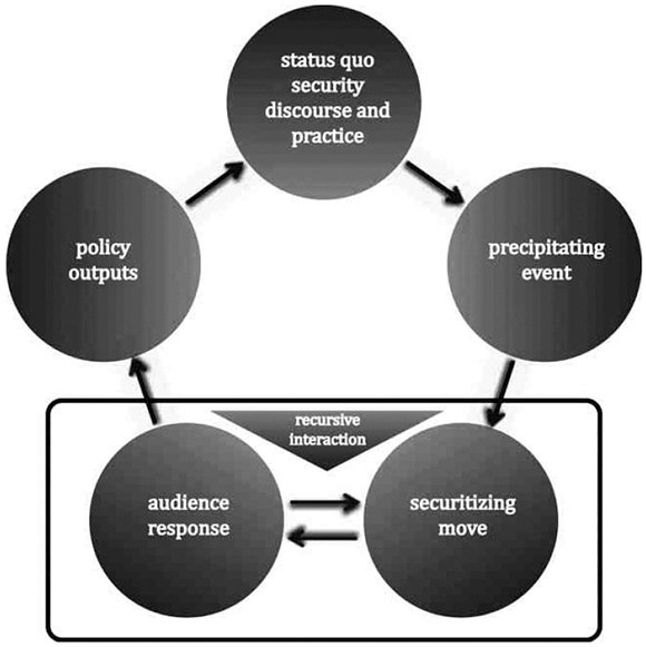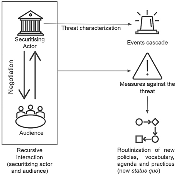 For securitising actors to determine their selection of threats, Sperling and Webber (2019) point to the politics of exception and the politics of routine. The former resembles CS, the classical approach to securitisation theory, which focuses on first-order threats (stemming from direct causes), such as terrorist attacks. In turn, the latter is more concerned about managing second-order risks (the requirements for their occurrence), such as transnational threats, in which security is observed as a cumulative quality rather than an emergency. These authors furthermore argue that security emerges not from the consequences of circumstances; instead, an actor with political power creates such circumstances through a discursive act, which describes, defines, and calls for an audience’s legitimation of the proposed measures.