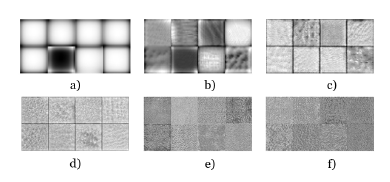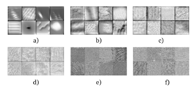 Figura 4 Extracción de características en las capas: a) convolución 1, b) convolución 2, c) convolución 3, d) convolución 4, e) convolución 5 y f) convolución 6.