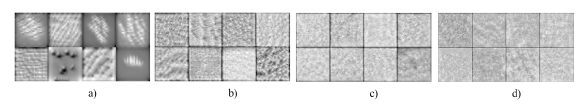 Figura 6 Extracción de características en las capas: a) MaxPooling 1, b) MaxPooling 2, c) MaxPooling 3, d) MaxPooling 4.